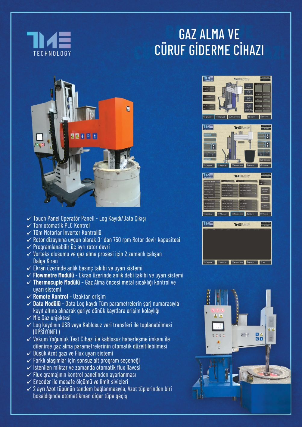 Gaz Alma ve Cüruf Giderme Cihazları, Vakum Yoğunluk Test Cihazı, tek veya çift tanklı Flux Feeder, Jet Cooling, Otomatik Dozajlama Sistemleri gibi dökümhanelere yönelik birçok farklı makine projelerine imza atmaktadır.
